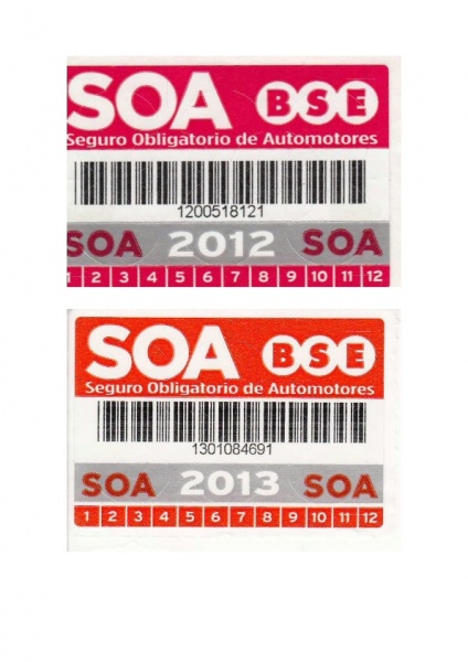 El Seguro Obligatorio de Automotores (SOA) es un seguro creado por la Ley No 18.412 que entra en vigencia el 19 de agosto de 2009, y es obligatorio para todos los vehículos automotores y remolcados (incluyendo motos, a excepción de las de menos de 70c.c. que hayan sido empadronadas con anterioridad al 19/08/09). |